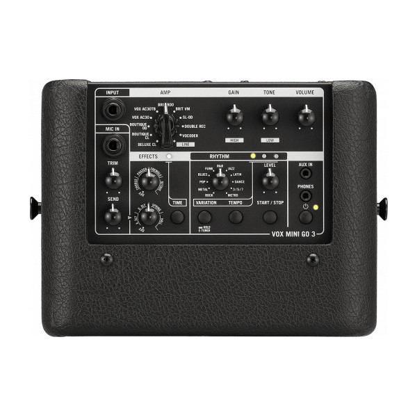 En plus de la prise jack pour guitare, les amplis VOX MINI GO disposent d'un choix complet d'entrées et sorties : une entrée micro (jack) avec volume indépendant, une entrée auxiliaire pour raccorder une source externe (smartphone, lecteur mp3…) et une sortie casque.